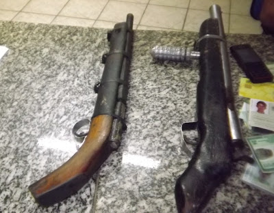 e em poder dos mesmos a policia encontraram duas espingardas tipo 12 de