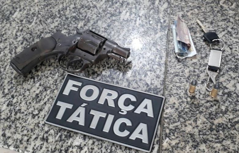 estava portando um revolver calibre 38 municiado com 02 balas intactas, o outro conseguiu continuar a